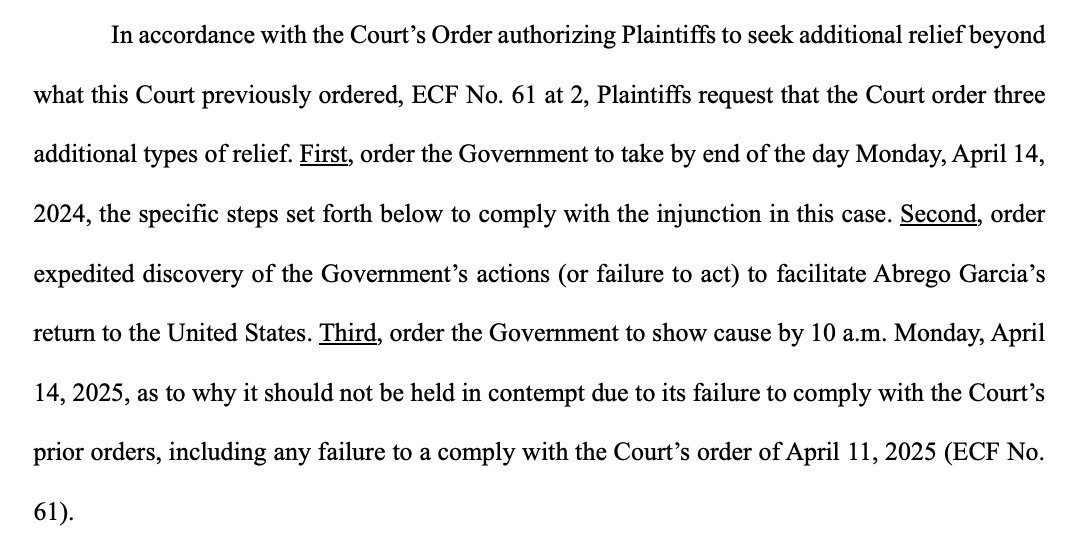 But! Abrego Garcia's attorneys have just asked Judge Xinis to order the govt to take these specific steps to return him: storage.courtlistener.com/recap/gov.us...