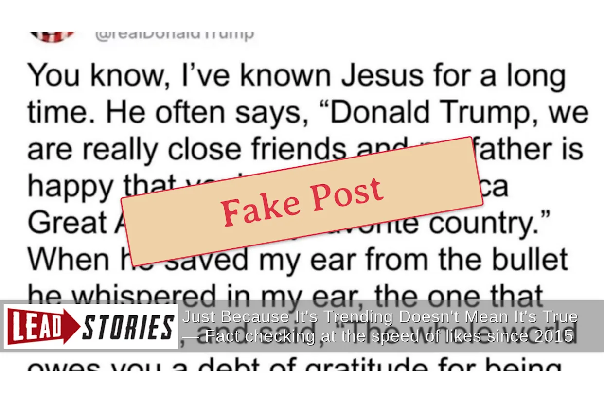 Did President Trump post on his Truth Social account that Jesus told him that "my father is happy that you're making America Great Again." No, that's not true: There is no post on Donald Trump's Truth Social timeline in which the phrase "my father is happy that you're making America Great Again" appears. Lead Stories could find no evidence the president ever made this statement.