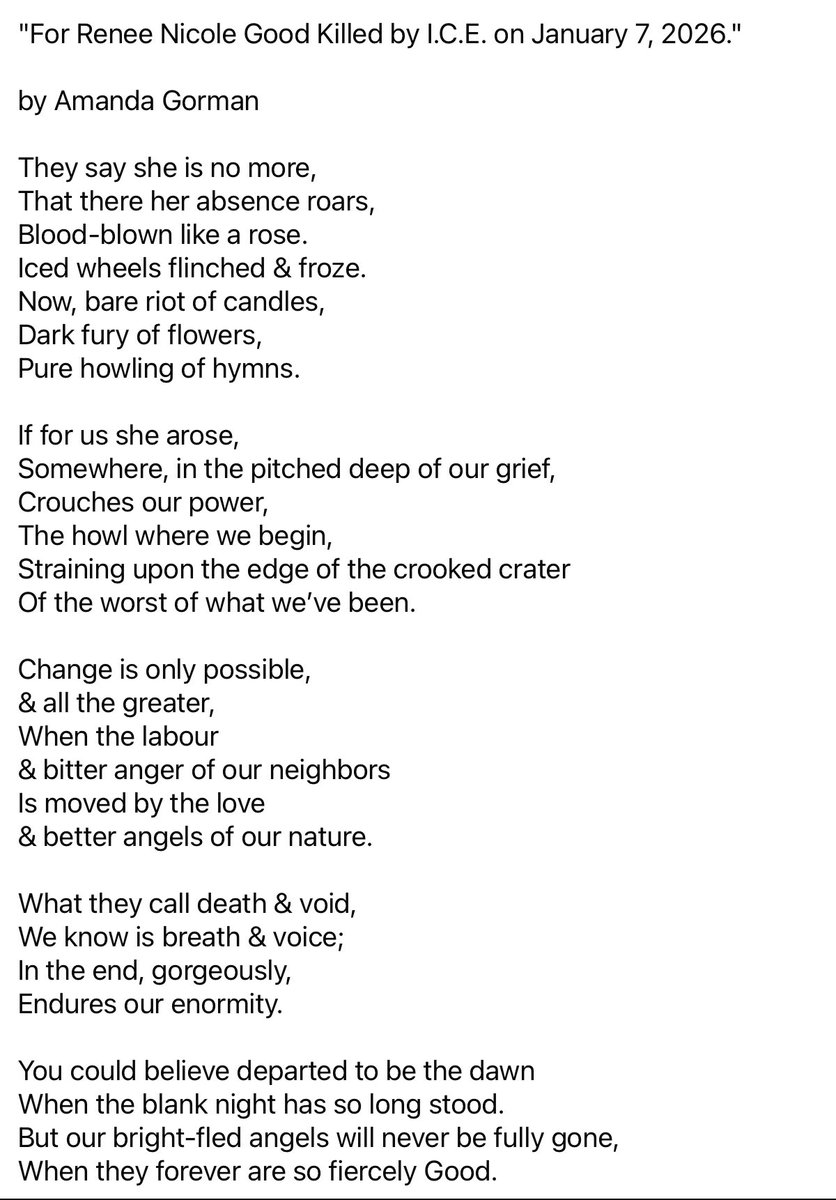 National Youth Poet Laureate Amanda Gorman pens a moving poem in the wake of the tragic ICE killing of Rene Good (Original Post)