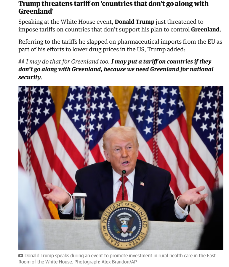 He is looking for the least embarrassing off ramp to back away from his bluster about invading Greenland, now that he sees the EU is serious about retaliation, economic and otherwise.