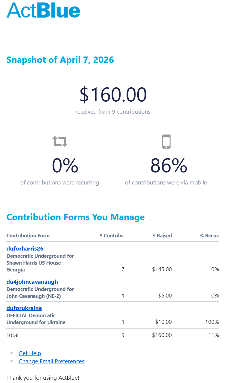 You raised $160.00 on April 7, 2026 @ ActBlue