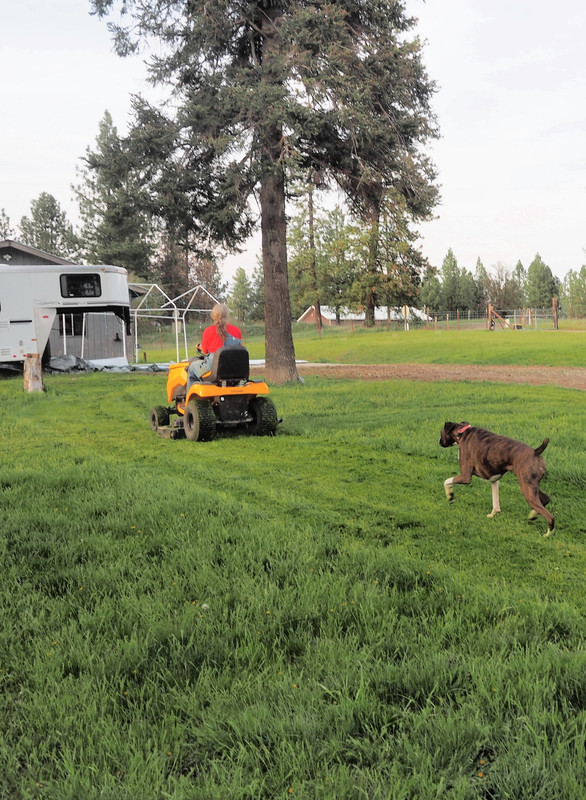 AND she mowed the lawn (in her spare time). With grand-dog Pepper's "help".