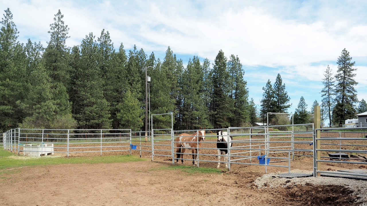 In this photo, our neighbor's three horses were watching horses and riders on our obstacle/trail course. The horse in foreground and his rider were practicing on the course.