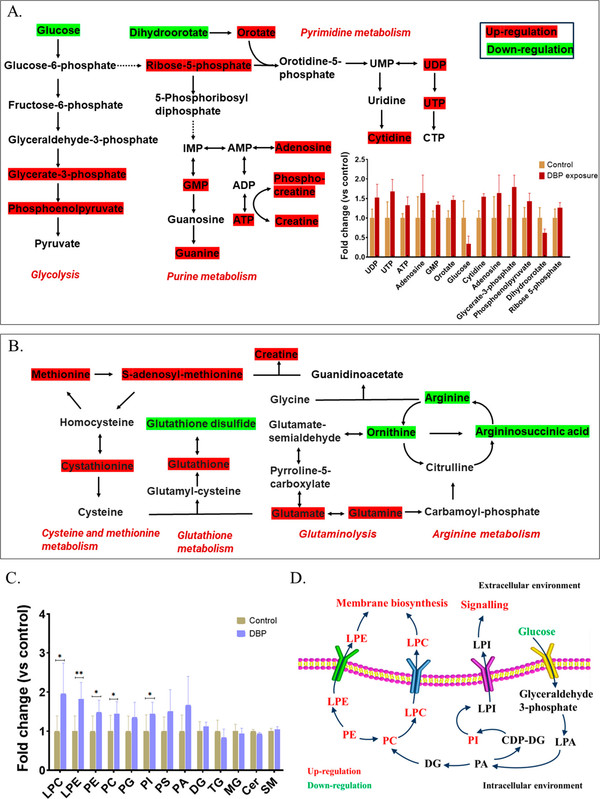 Breast cancer is the most prevalent cancer worldwide, with 2.3 million new cases in 2020. (7) It is also the primary cause of cancer mortality in women (685,000 deaths globally). (7,8) Epidemiological studies have shown that DBP exposure was associated with a nearly 2-fold increased rate of breast cancer. (9,10) Consistent results were also found in several in vitro studies, which showed that DBP can modulate the expression of ERα through DNA hypomethylation or demethylation, even at a very low concentration. (11−14) DBP can also stimulate the aryl hydrocarbon receptor and promote tumorigenesis of ER-negative breast cancer cells. (15) However, most of the studies predominantly focused on gene and protein expression, and the connections between DBP-induced receptor activation and physiological effects in breast cancer remain poorly elucidated, which need further investigations through assessing the downstream metabolic processes. (16−18)