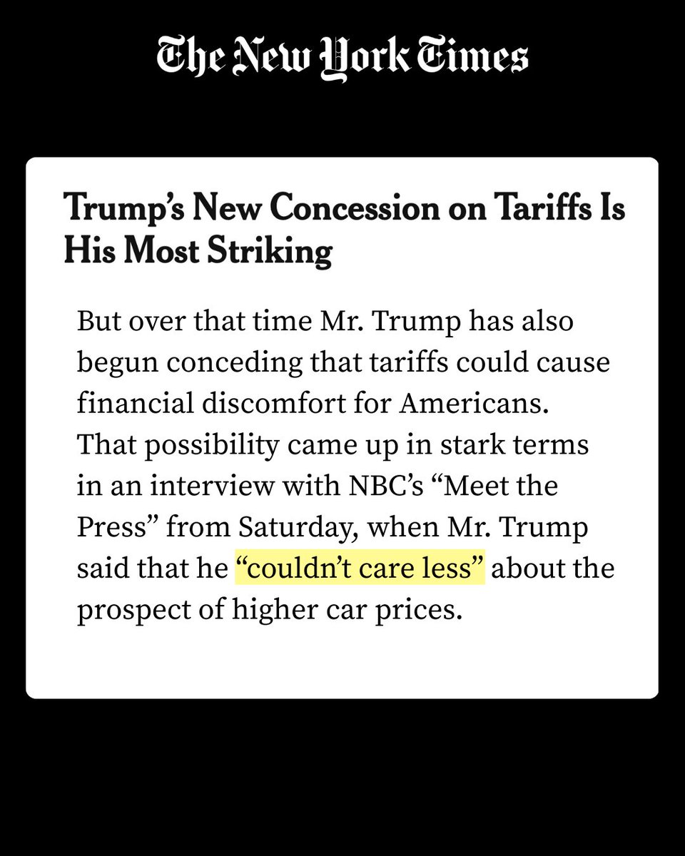 When it comes to other people, Tump has always been a "couldn't care less" kinda guy. patphil Apr 2025 #18