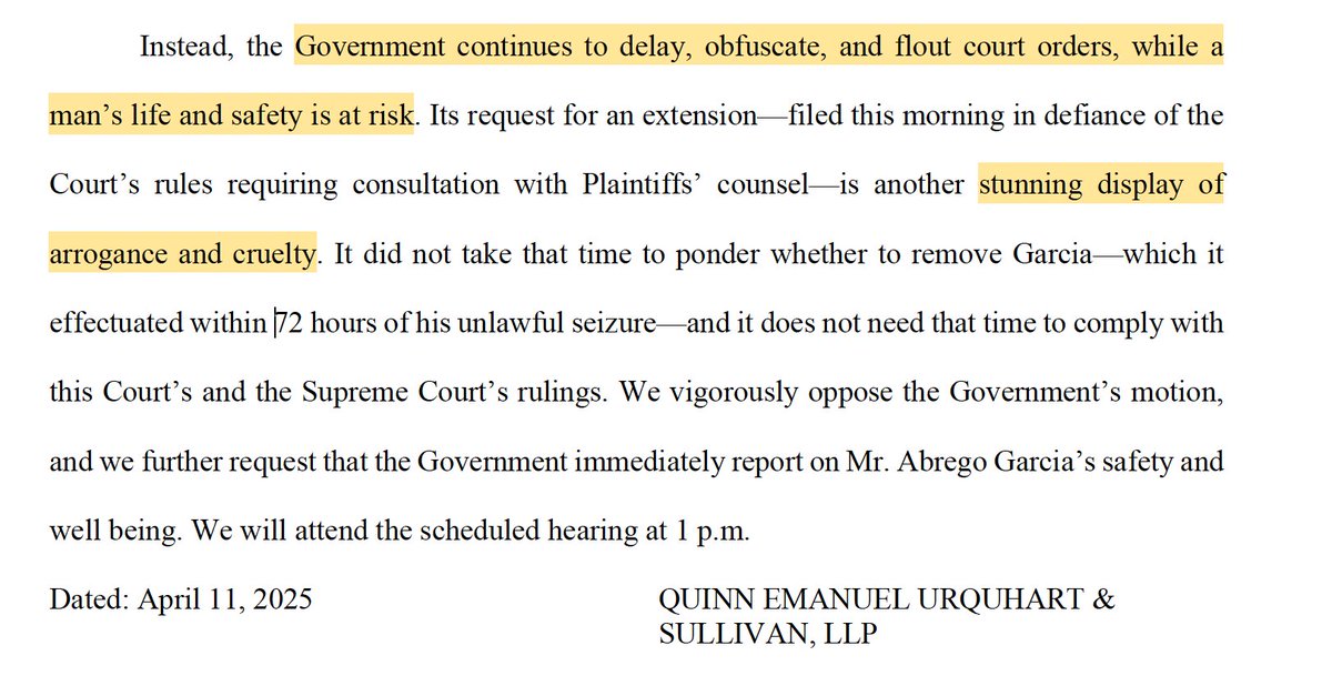 BREAKING: DOJ says it won't comply with Judge Xinis' order because the deadline she set is "impracticable."