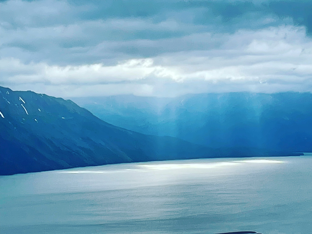 I was in Anchorage in 2022 and went down the Turnagain Arm. This was taken from the top of the Gondola at the Alyeska Resort. The sun spilling onto the waters despite the clouds trying their best