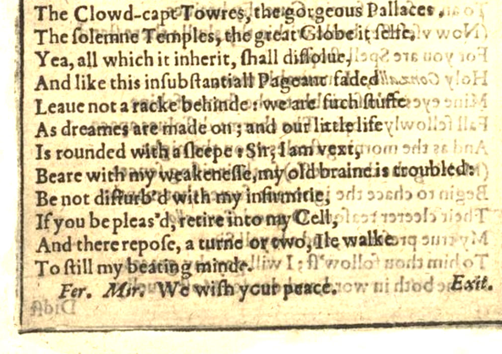 Source: The First Folio, The Tempest, Act 4 Scene 1 as printed in 1623