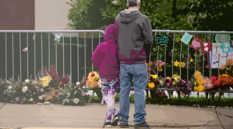 Visitors view items left by well-wishers along the fence at the Tree of Life synagogue in Pittsburgh on the first anniversary of the attack there, Oct. 27, 2019.